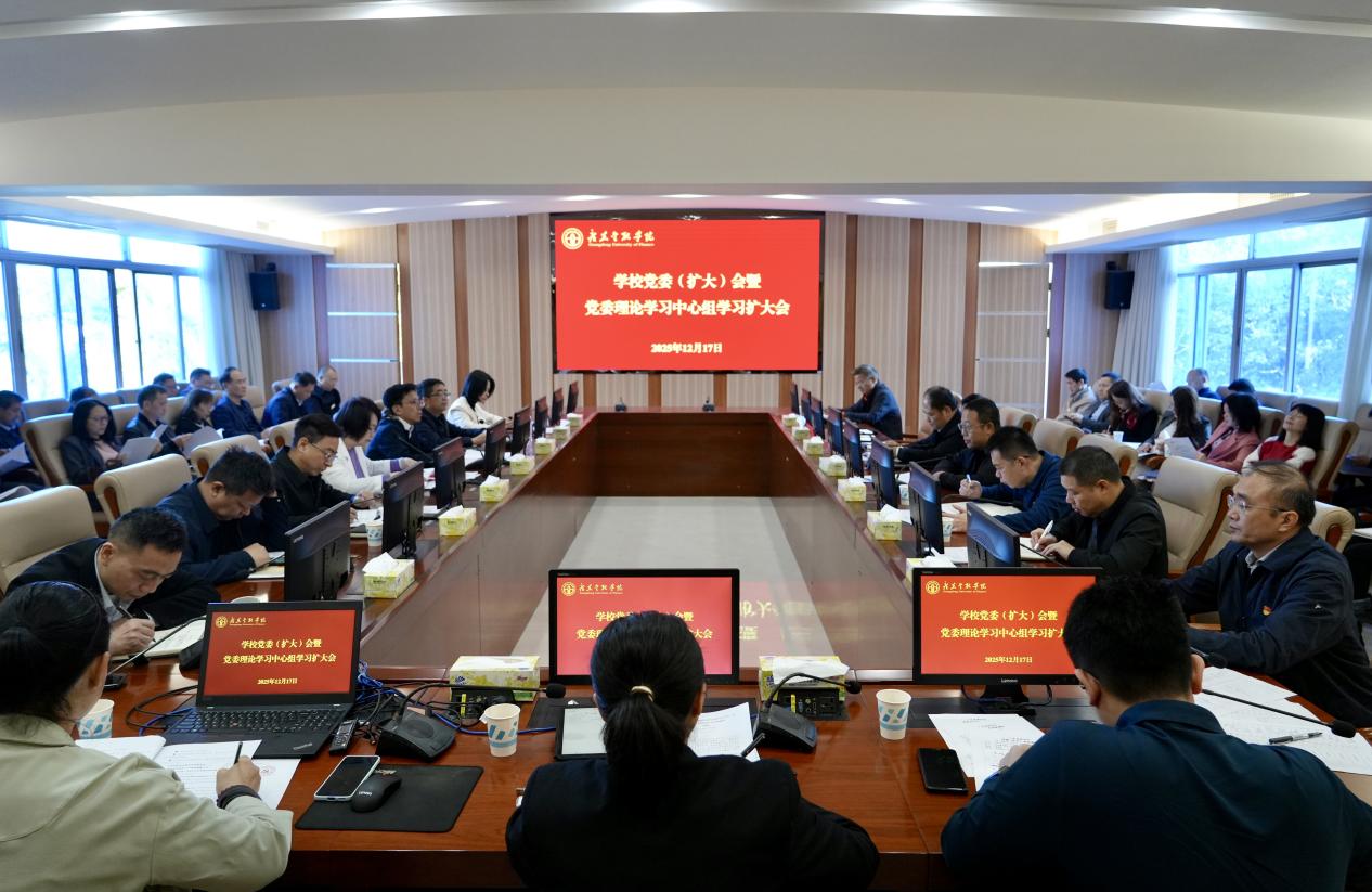 为深入学习贯彻2025年中央经济工作会议精神,切实把思想和行动统一到党中央对经济工作的决策部署上来,结合学校发展实际,研究贯彻落实举措,12月17日,学校召开党委理论学习中心组(扩大)学习会。学校领导、党委理论学习中心组成员、重点职能部门负责人、各二级教学单位党政主要负责人、“双代会”代表团团长等参加会议。会议由学校党委书记李建军主持。