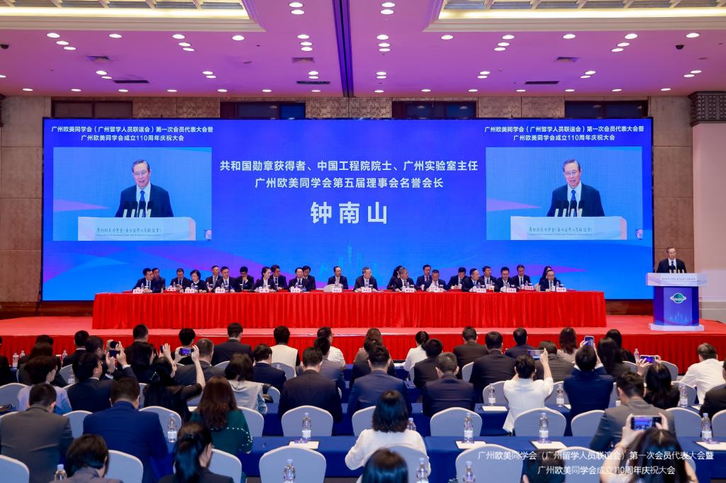 会上,钟南山院士代表归国留学人员致辞表示,110年来,在广州欧美同学会的团结引领下,广大留学人员弘扬留学报国传统,在广州革命、建设、改革的历史画卷中谱写了动人和精彩的篇章。他号召广大留学人员继续发扬留学报国的光荣传统,心系“国家事”、肩扛“国家责”,投身时代发展洪流,勇攀科技创新高峰,始终与国家发展同频共振,为广州高质量发展注入源源不断的澎湃动能。